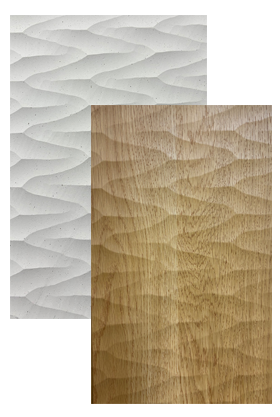 - 「平板フラット」と木肌の表情を刻む「3D名栗調」の2タイプ