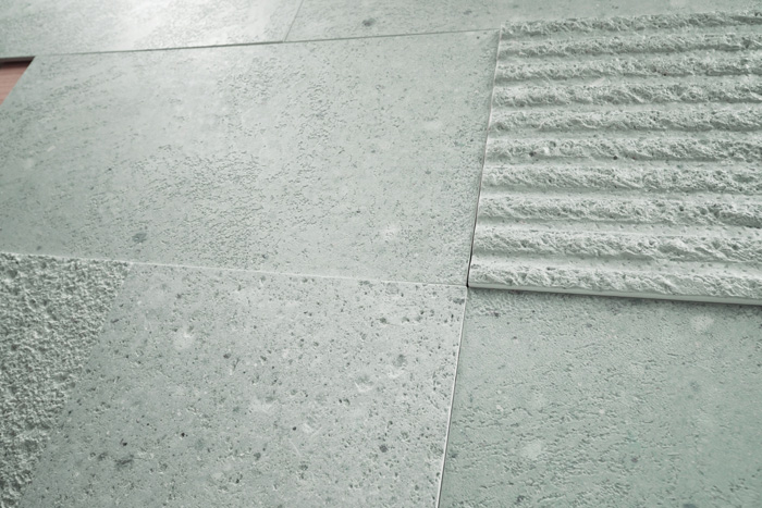 宇都宮市の大谷地区から採石される、軽量で加工しやすい凝灰岩の大谷石をモティーフとしたストーンパネルです。表面のやわらかな緑がかった色や風合いが独特の雰囲気を再現しました。